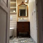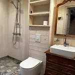 Ce logement comprend une salle de bains avec une toilette séparée et une douche. Des draps de bain sont également fournis.